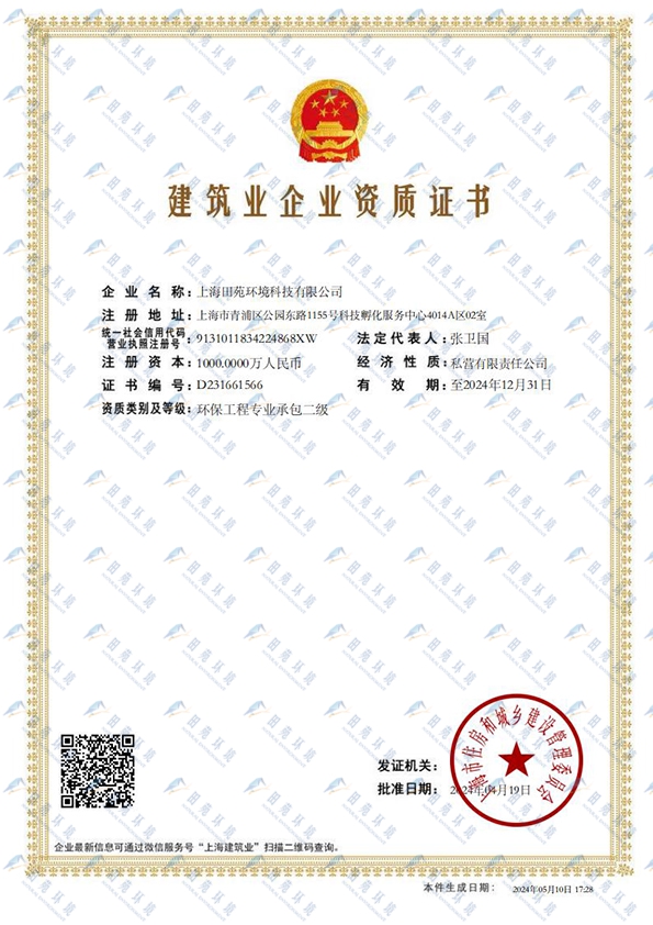 《中國(guó)環(huán)境服務(wù)認(rèn)證證書【環(huán)保管家一級(jí)】》
